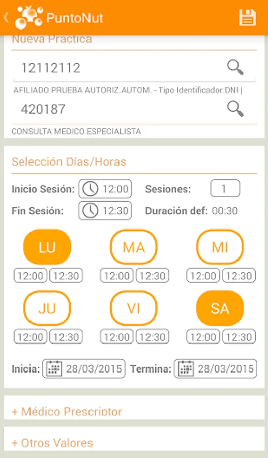 - Generate high complete treatment for each patient, indicating the medical service to be performed and the number of sessions required, enter the prescribing physicians and ICD-10 diagnosis included in the application.