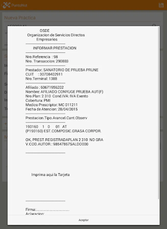 - Incorporate safety features required by funders to allow authorization of the treatment, as the security code of the credential, the geographical position where the attention and the photo takes care client.