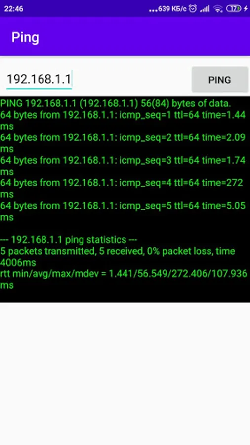This application allows you to send ICMP packets on your mobile or WiFi networks and see the ICMP echo replies. Check the reachability of network nodes, investigate the problems on your network by ping packets.