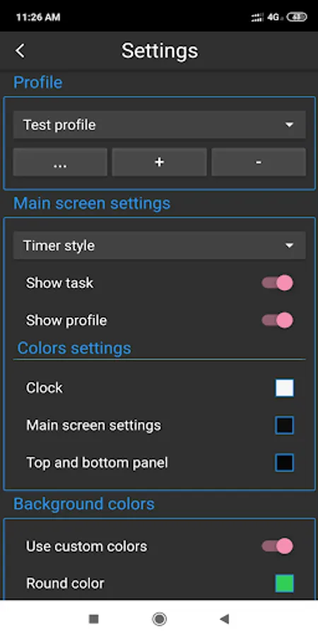 - Change the main screen: the color of the panels, the background color, the color of the clock face