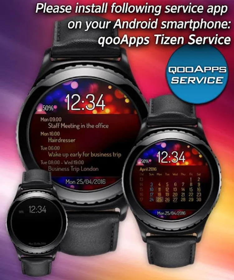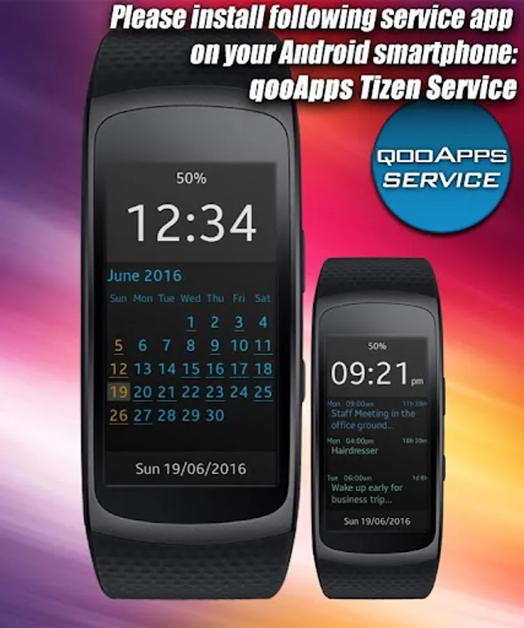 This service provides calendar data and website view for Tizen smartwatch watchfaces.