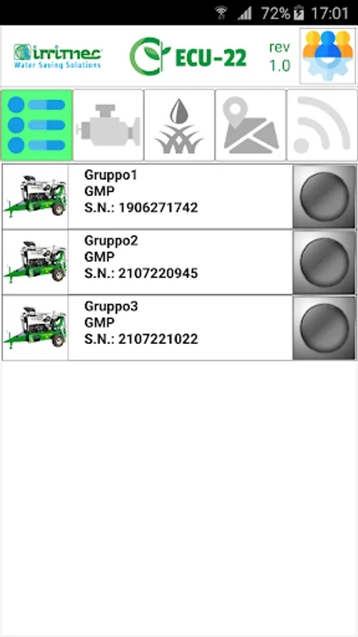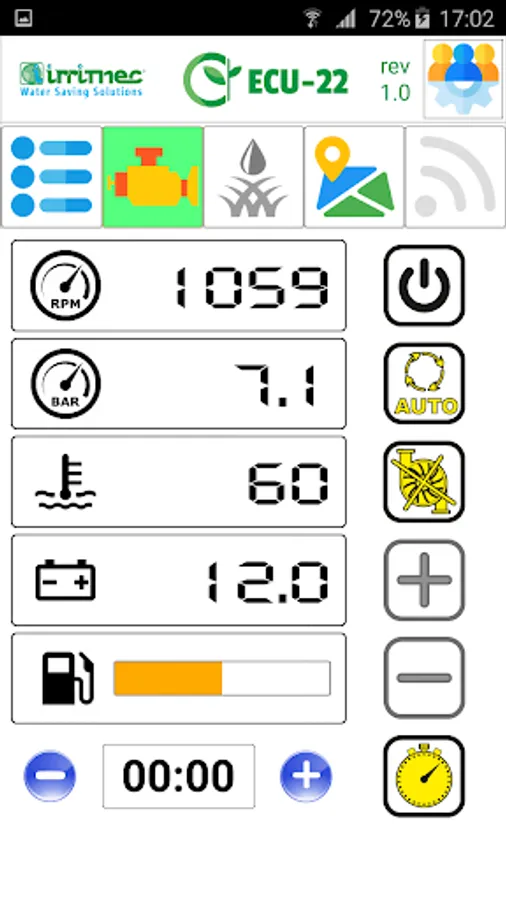 ECU-22 is an application for diagnostics and control of the ECU-22 control unit installed on Irrimec Srl sprinklers and motor pumps