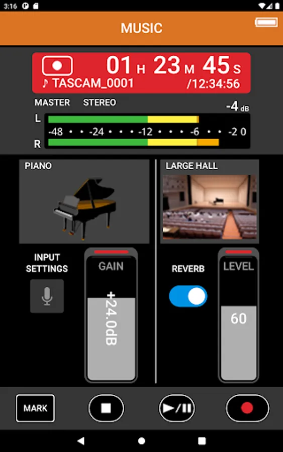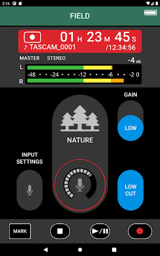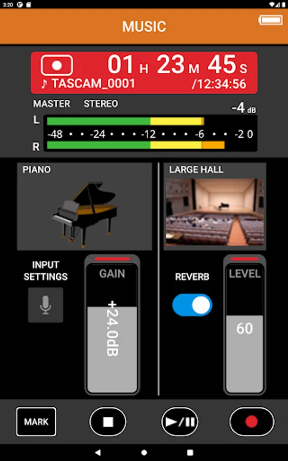 In addition to the basic REC start/stop, gain adjustment, mixer control, mark registration, and all the other controls that can be performed on the main unit are available on this app. Moreover, you can always check information about the input level, recording progress/remaining time, battery level, as well as set various parameters including low-cut, limiter, and many more effects.