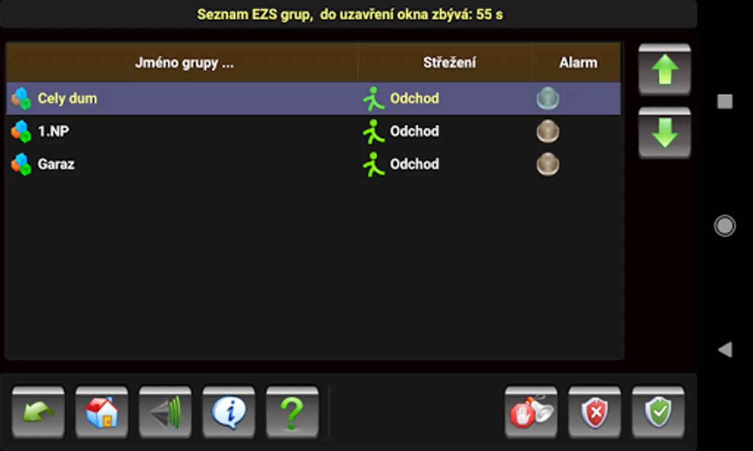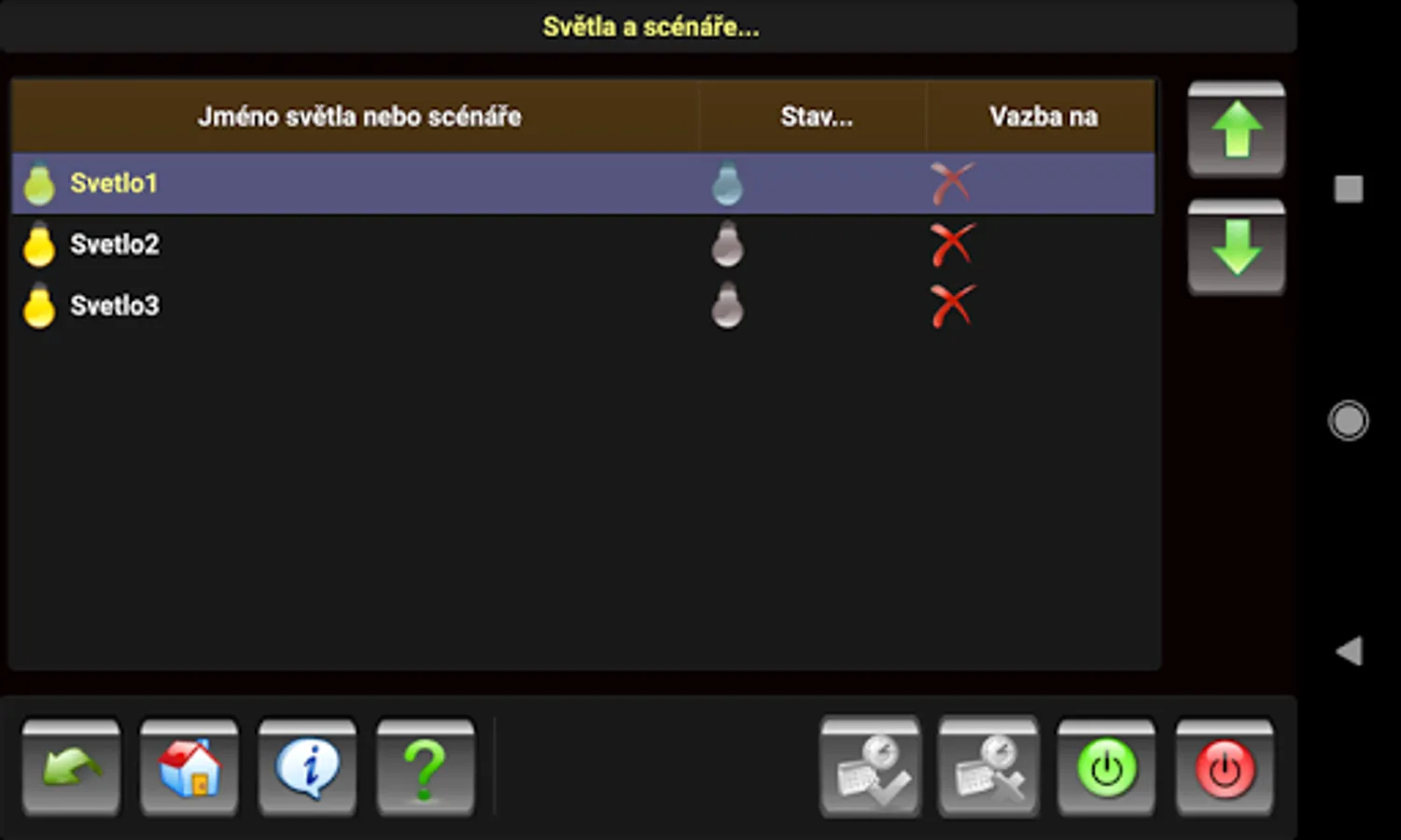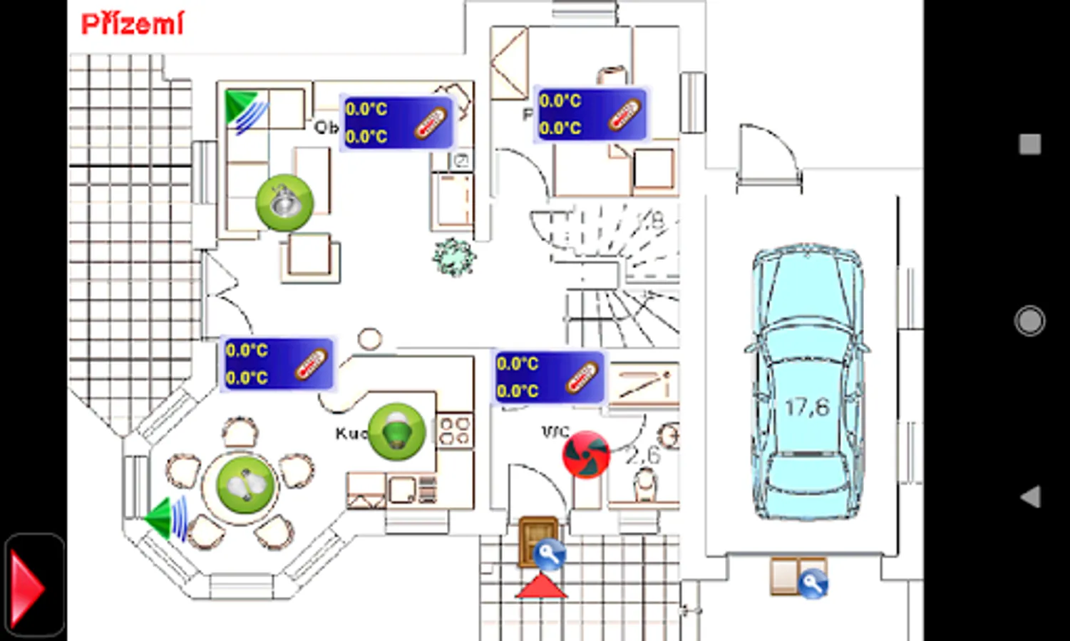 The control panel shown allows you to control individual home systems using the buttons. In the following layers, the individual systems of the house can be viewed, controlled and possibly configured.