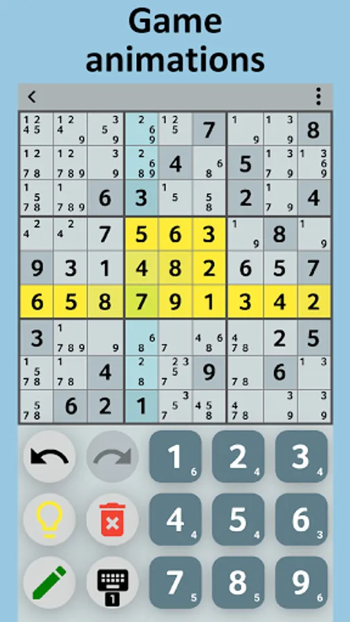 - Animated digits search – helps to fascinate the Sudoku gameplay