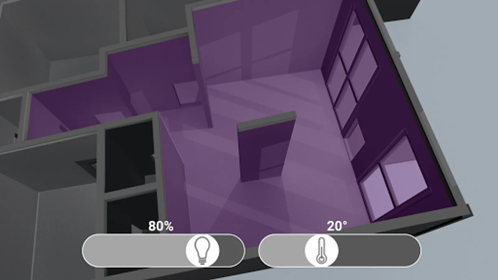 Application created with Qt 3D Studio and Qt Quick. Uses a Qt 3D presentation (.uip file) to show what home automation application could look like. The demo has controls to change lighting and temperature, represented as colours, of the rooms.
