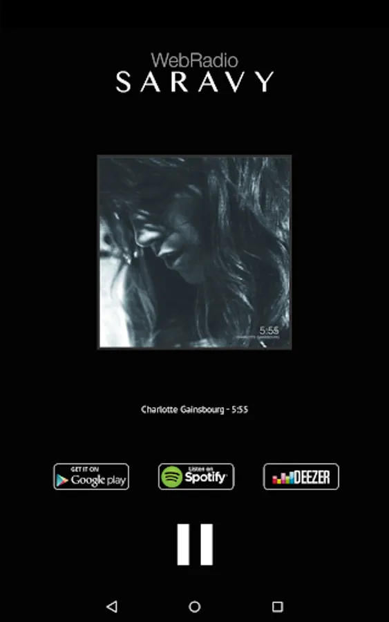 Saravy, an application for listening to web radio Saravy to know all listened titles and buy directly from the Google Play Store or listen on Deezer or Spotify.