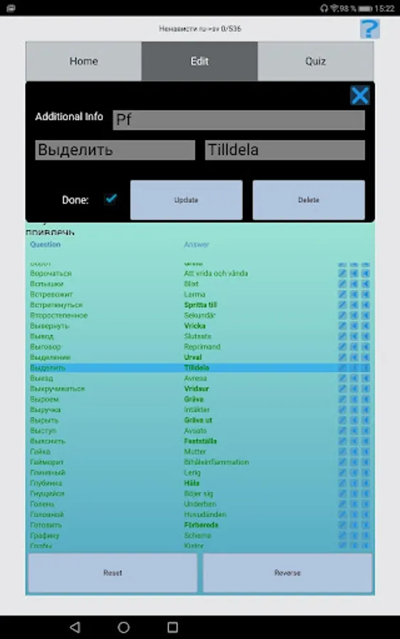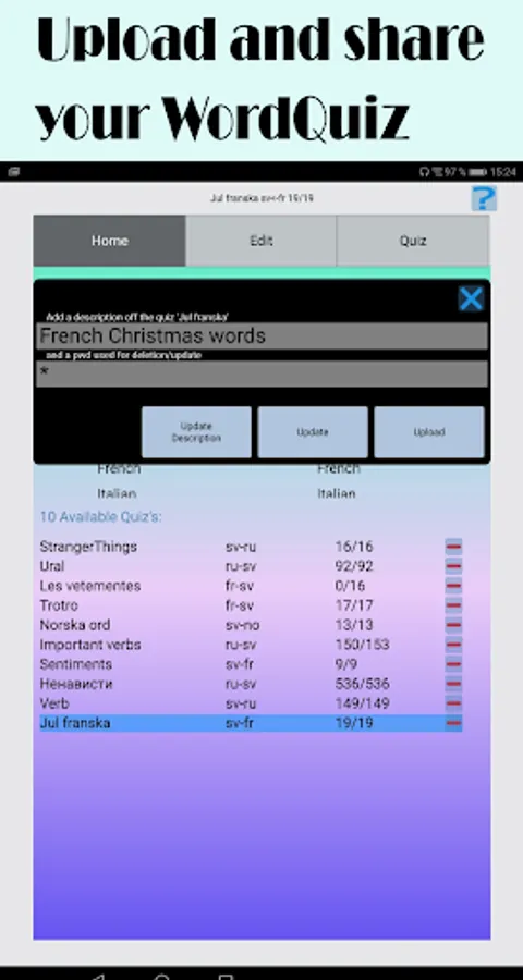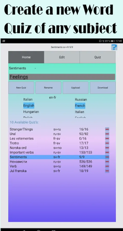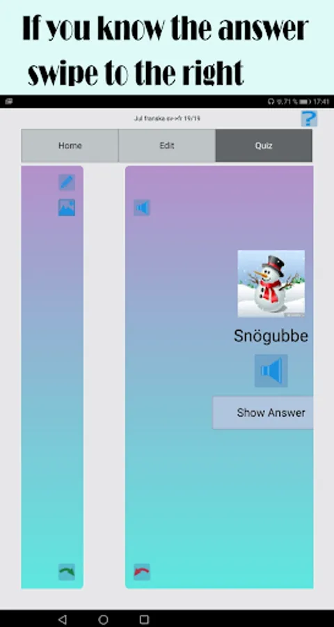Make Your own language rehearsal quiz or download one. Take the quiz and swipe right if you known the word or swipe left if you don't (Tinder style). You can also take a spelling quiz or listen to the questions.
