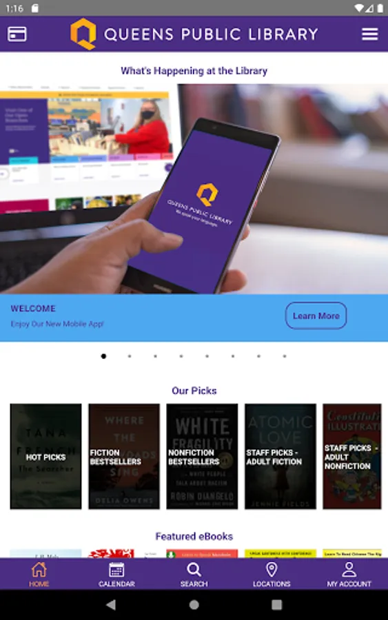 The Queens Public Library App is your gateway to QPL’s services on your mobile device. Our revamped application represents a leap forward in usability, speed, and convenience for our users. You can read, listen to, and watch materials directly, search our catalog, view account information, request books, search and register for events, find our locations, ask for assistance, join our vibrant online community, and much more. The QPL Mobile App is compatible with both phones and tablets. Experience Queens Public Library like never before, anywhere you have a network connection.