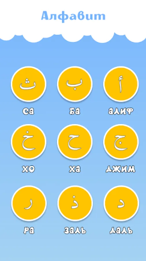 1) 1 level. Acquaintance with the letters of the Arabic alphabet.