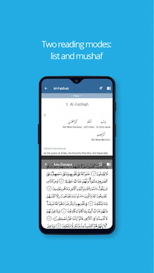 - two read modes: list scrolling and mushaf