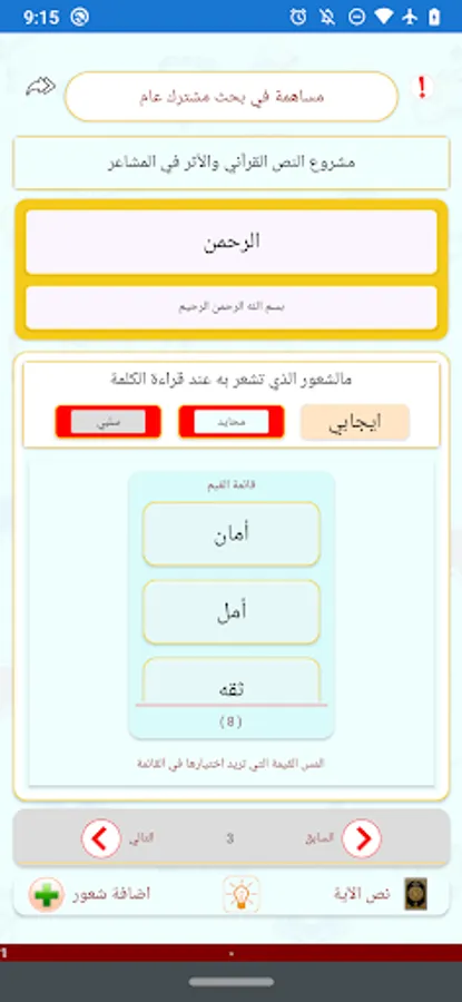 In the current project, the feeling that the reader feels for each word of the Holy Qur’an is determined, whether it is a positive or negative feeling, and the degree of vulnerability is determined.