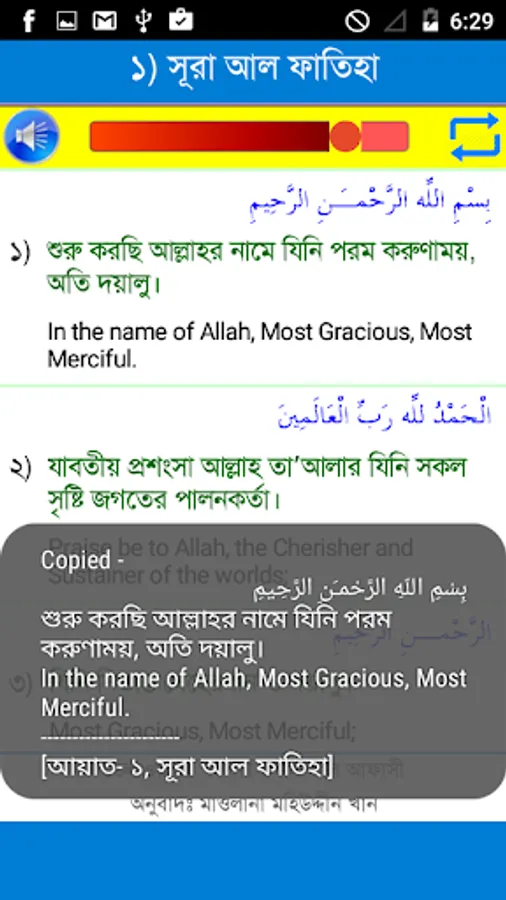 Update: Now a single sura can be recited repeatedly or all Surah serially. Some GUI adjustment for small devices. Some dua needed to read during Prayer have been included.