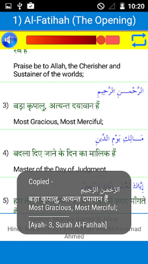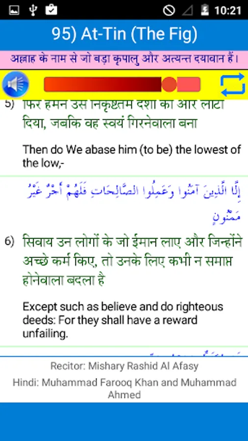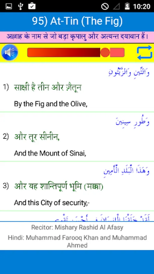 25 Small Surah from the Holy Quran recited by Sheikh Mishary Rashid Al-Afasy. Hindi translation by Muhammad Farooq Khan and Muhammad Ahmedare are included. The following sura have been included in the application.