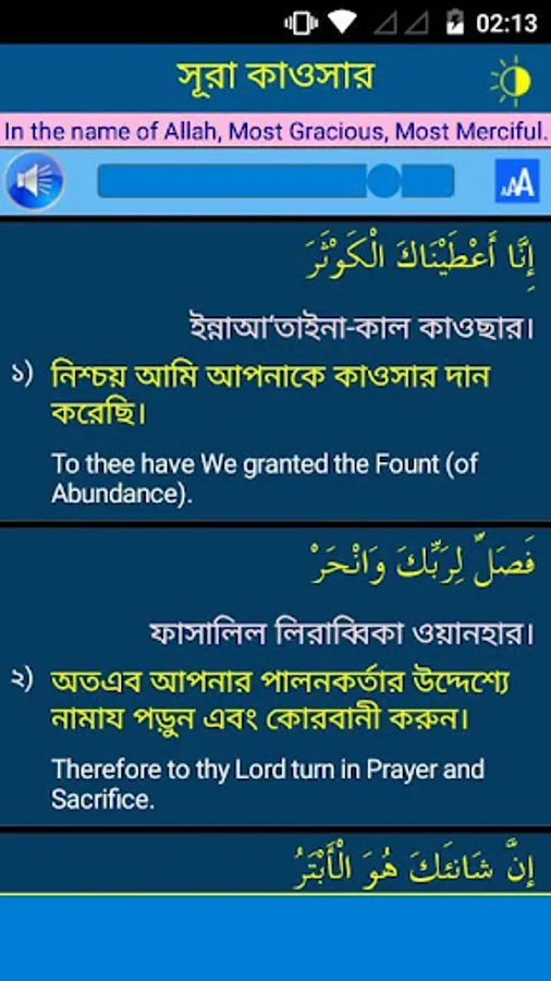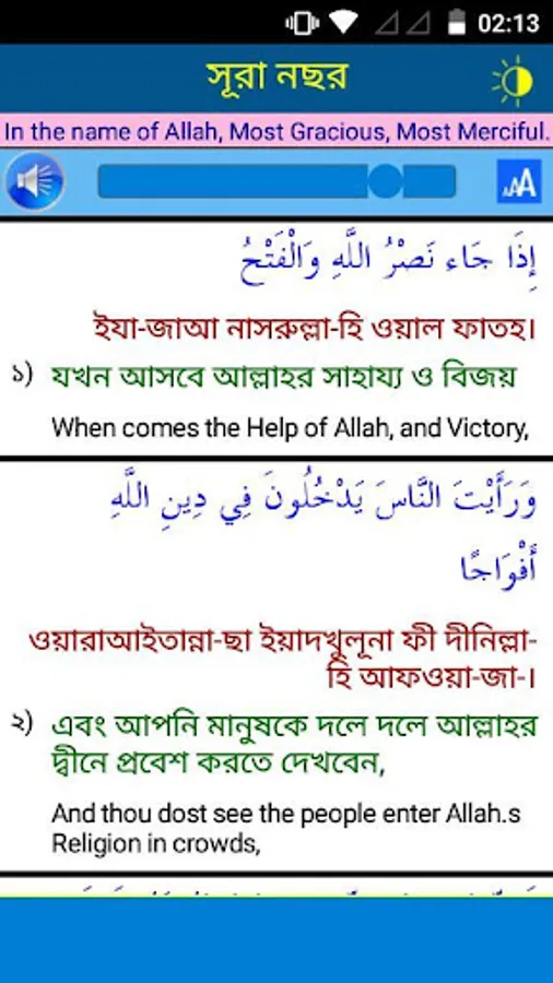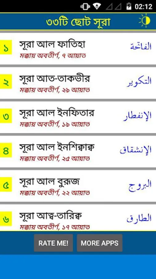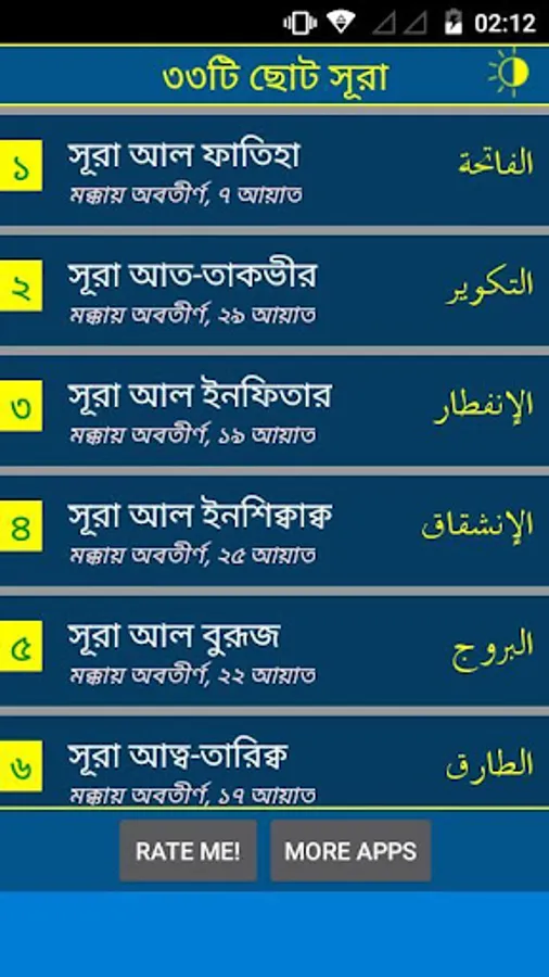 In this application 33 small surah with recitation (mp3), Arabic, Bangla pronunciation and Bangla-English meaning have been added. This app will also helpful for memorizing these surah easily.
