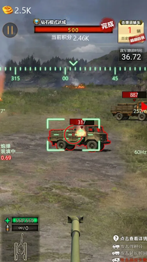 1. Press and hold the screen to aim at a local tank or fighter, and release it to fire shells;
