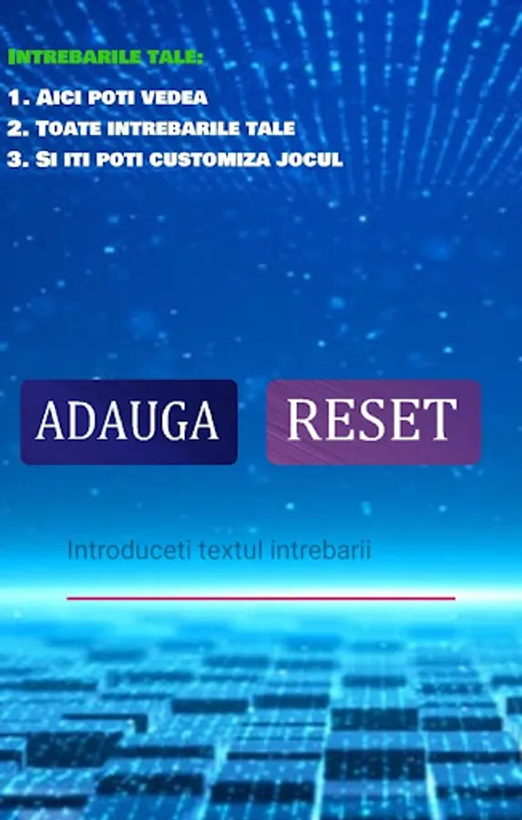 Are you a creative person? You have the possibility to create your own set of questions or add your own questions along with those offered by the application.