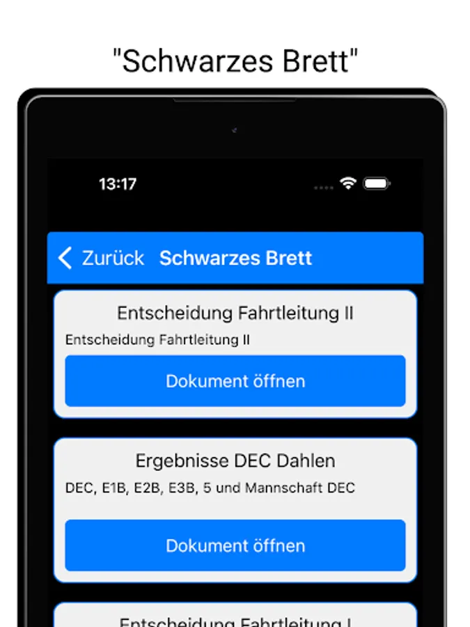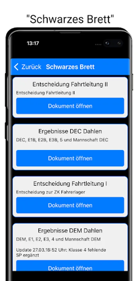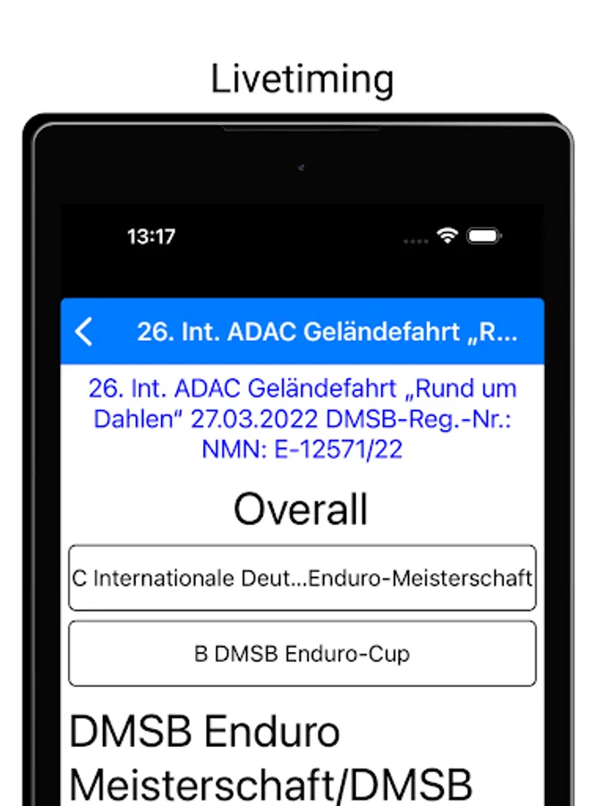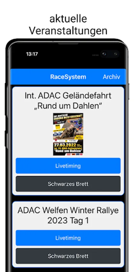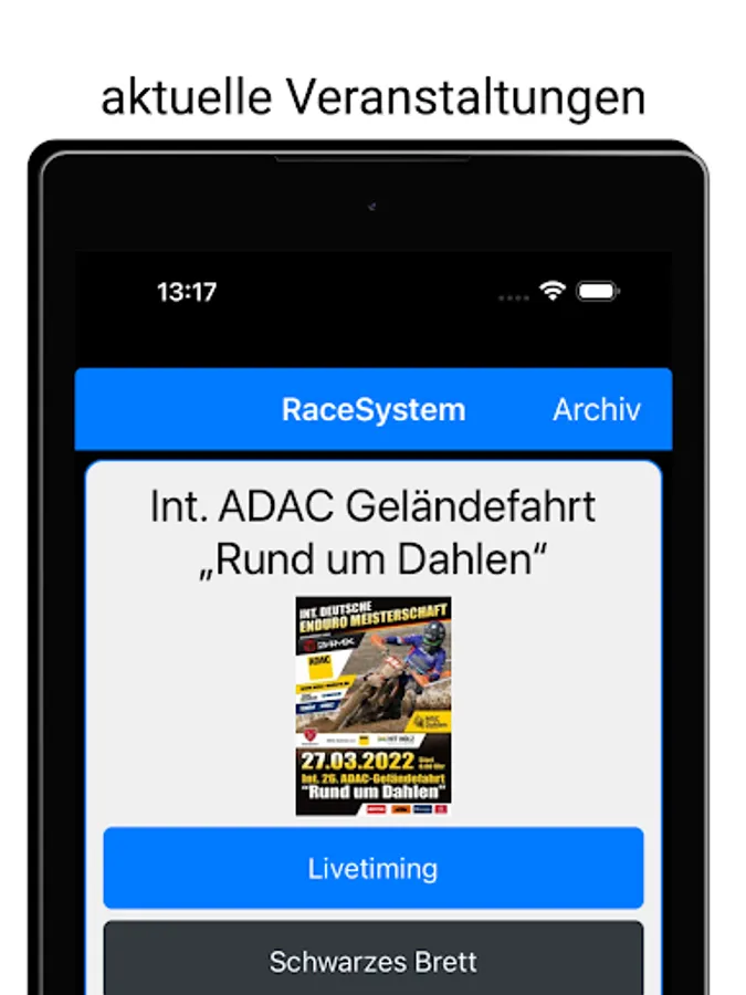 All important information from the "notice board" as well as the live timing of an event, all in one app!