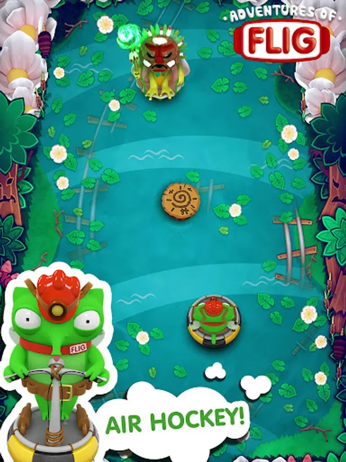 Free game Adventures of Flig - opens a new world in hockey games without glow and neon! It's interesting story which combines 3 challenge mini games in one - air hockey, runner and labyrinth.