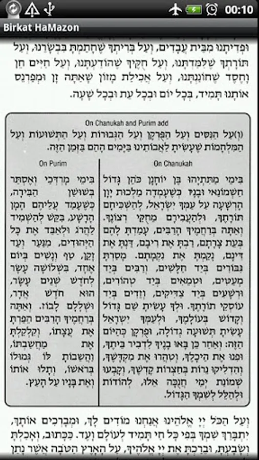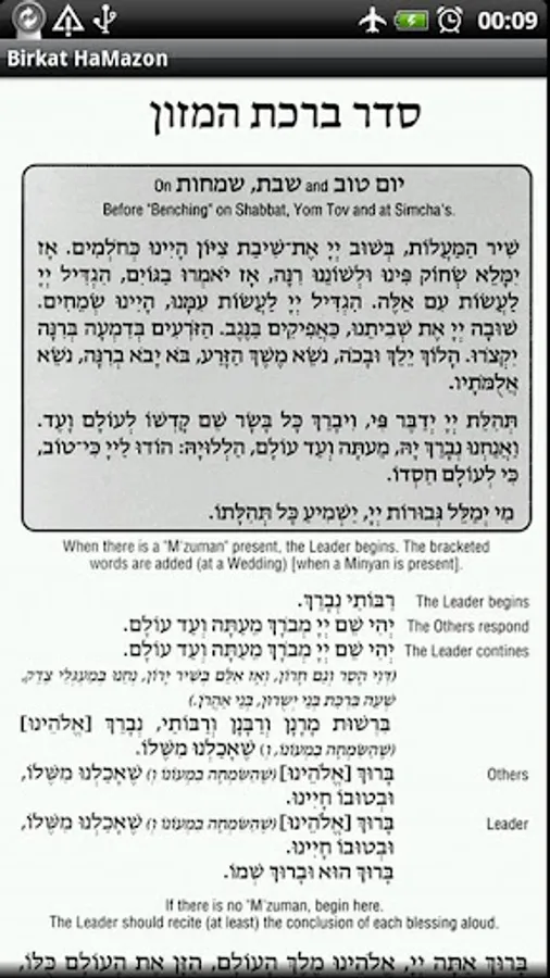 Ashkenaz Birkat HaMazon application with inclusions for special occasions. Also has section with Brachot Achronah