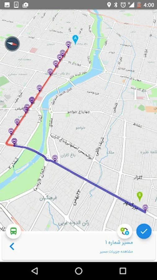 User by entering this section and click on the map to determine the origin and your destination and route system or via the Internet from a central server receives the proposed routes. Route to a map drawn and described step by step path is available to the user.