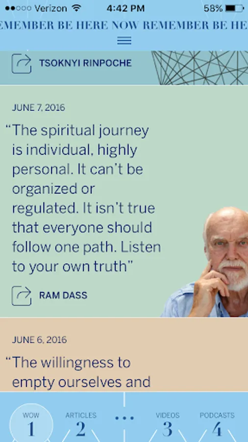 The Ram Dass app is a simple and easy way to explore the teachings and timeless wisdom of Ram Dass & other esteemed spiritual teachers.