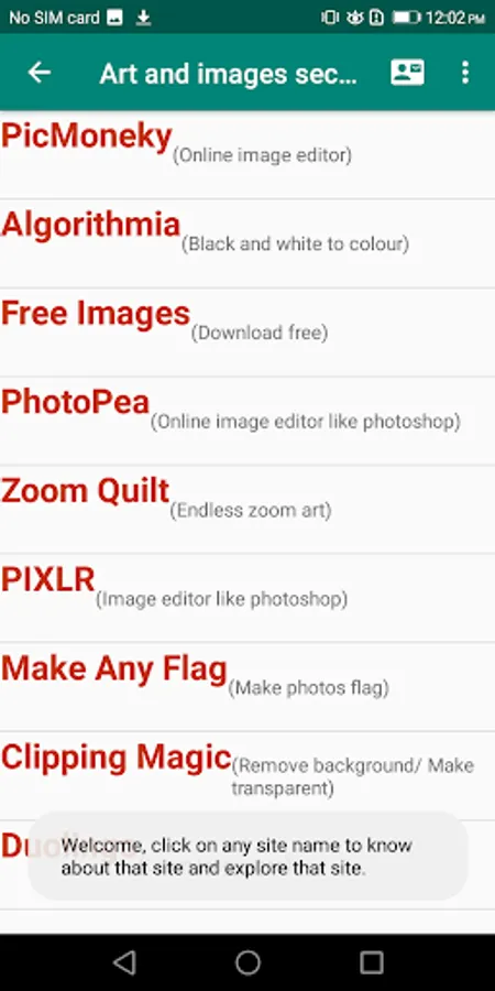 Hello, this app, Useful Unknown Websites App is to provide the links of useful but unknown sites on internet. You can find links of many useful sites here and directly explore form there. It works and gives you the link and description of site offline but you will need internet to browse to site.