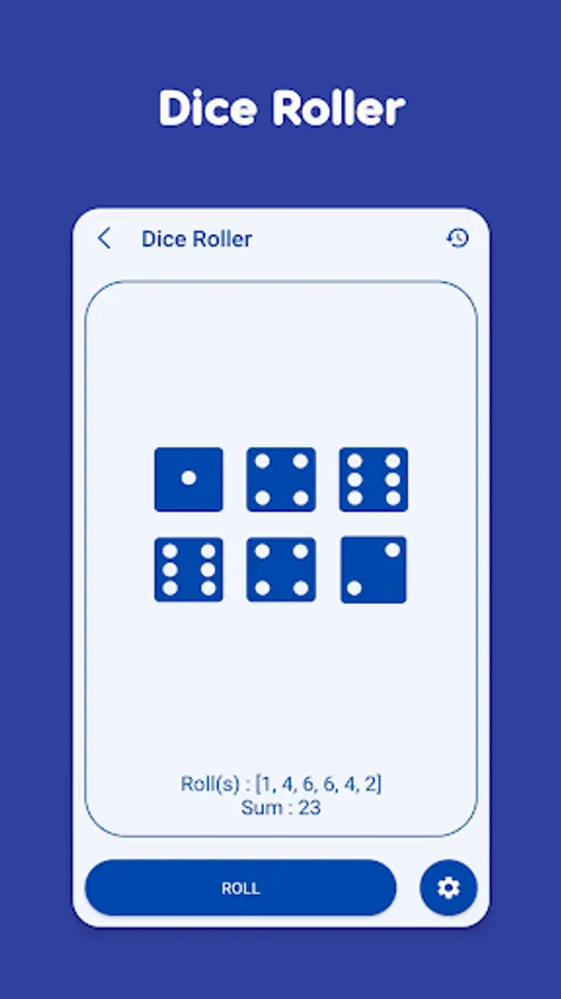 You will choose from 1 to 6 dice and press the ROLL button, the results will be displayed quickly with the score of each dice and the total score.