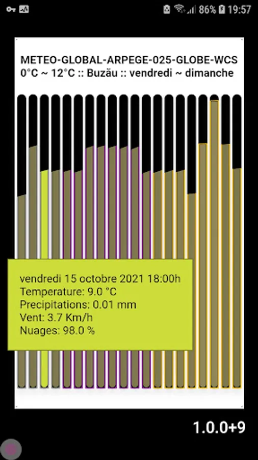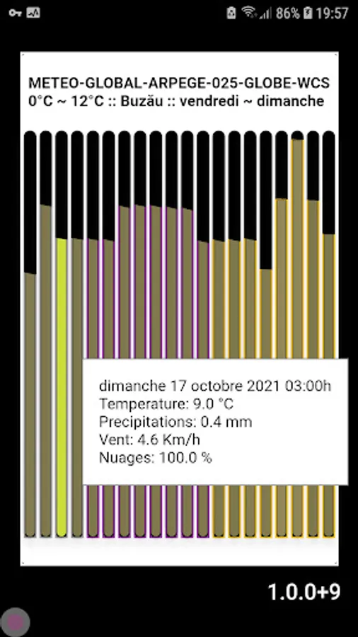 * Each bar is a forecast every 3 hours for an radius of 1.5 km around your location