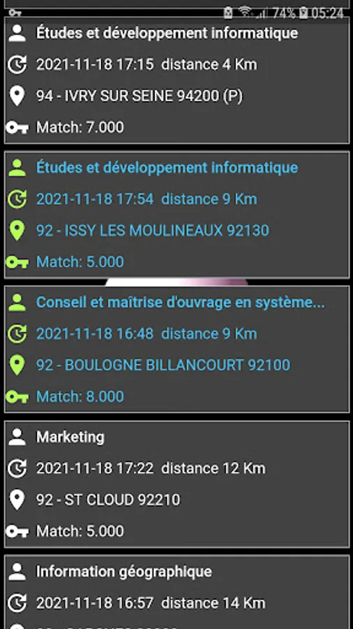View today's job center offers, in France. Filtered by keywords (OR) on title + description. Sort by GPS/GoogleMaps distance. Without duplicates and without incomplete data.
