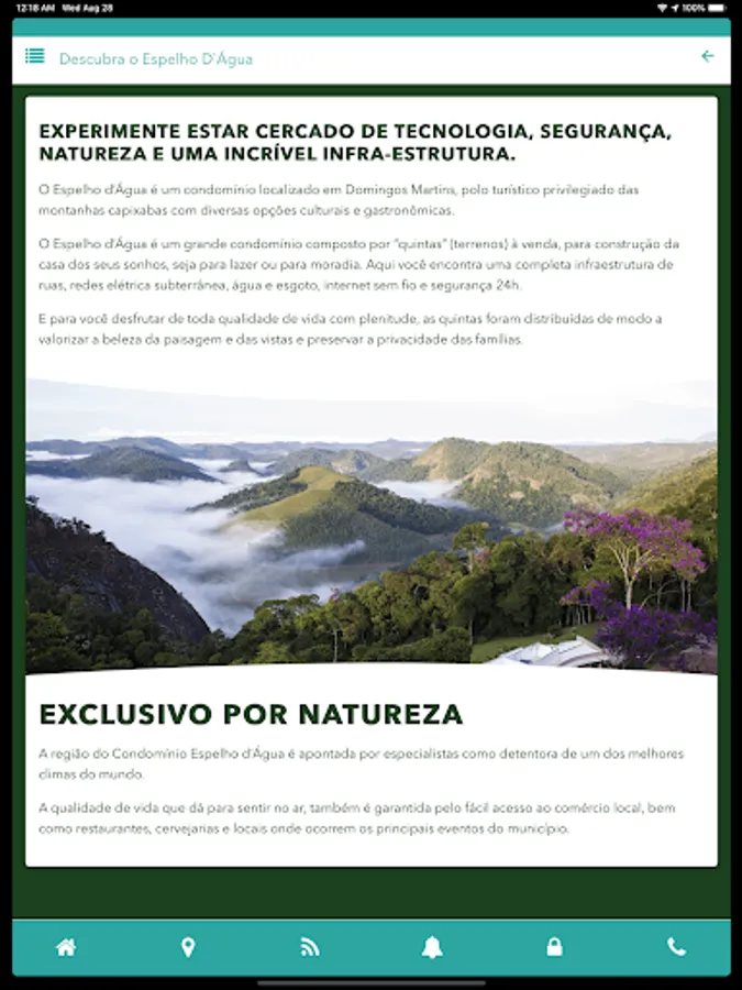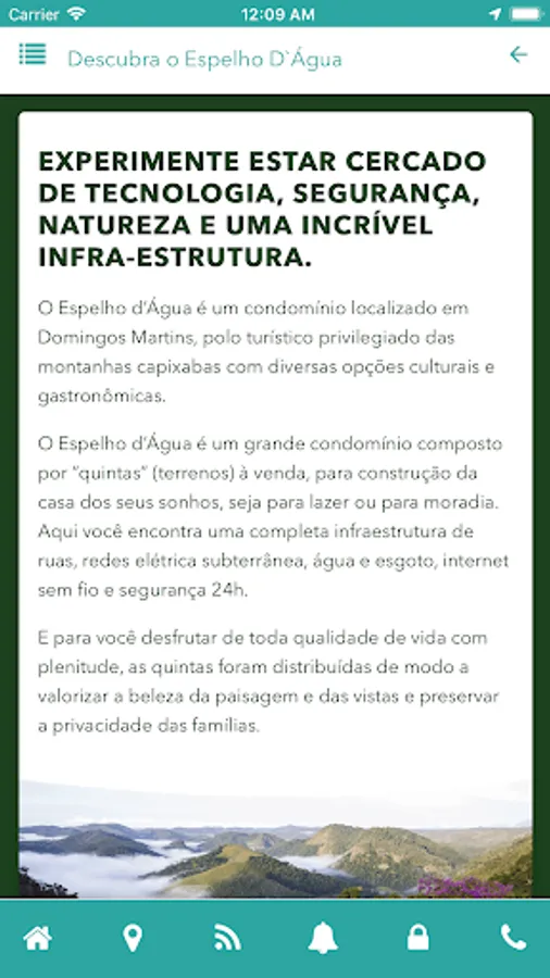 Application of Espelho d'Agua, condominium located in Domingos Martins, privileged tourist center of the Capixabas mountains with various cultural and gastronomic options.