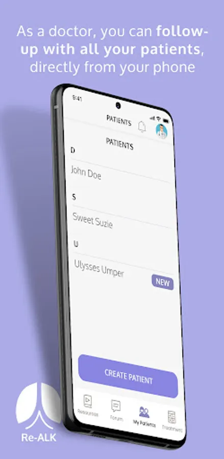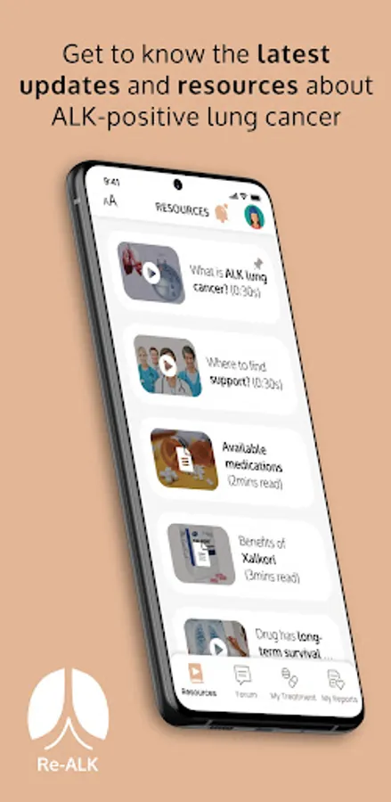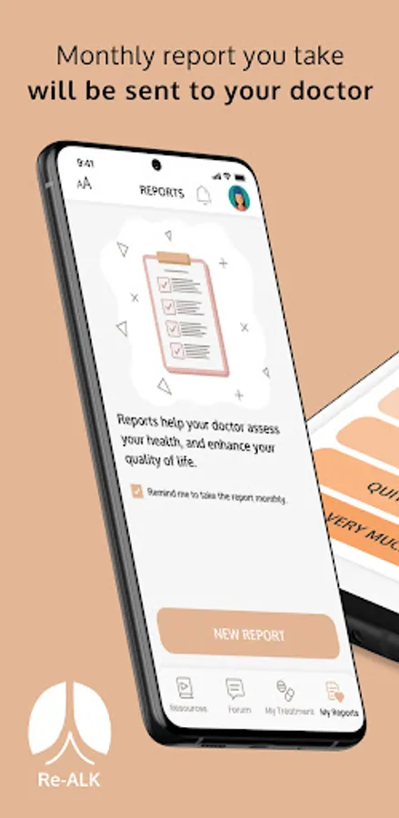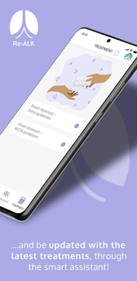 Re-ALK is created to improve the quality of ALK-rearranged Non-Small Cell Lung Cancer management through better practices and patients’ adherence. It is used to give scientific content for both doctors and patients. It also opens a forum of discussion for both patients and doctors. Patients can set reminders for their treatment and report adverse events on a regular basis. Doctors can receive adverse events reports from their patients and track them over time. They can also access decisional algorithms for different treatment lines.