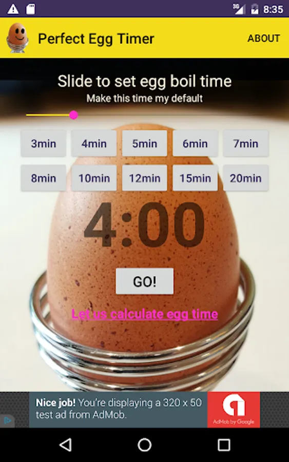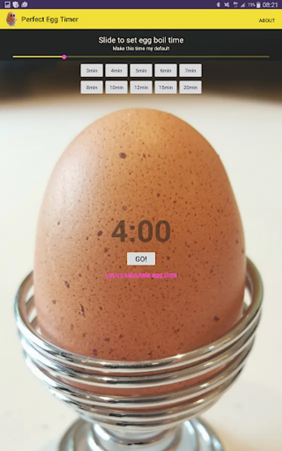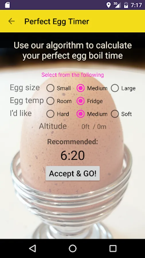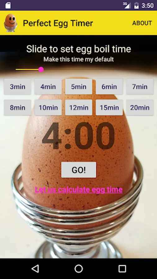 * NEW. Let us calculate your perfect egg time. Select link under GO! button.