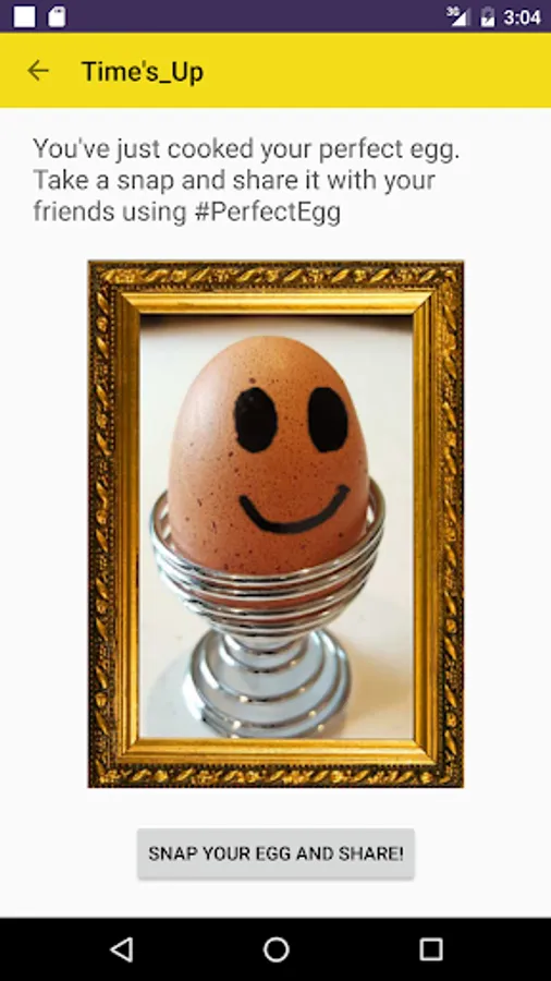 * And now you've made your perfect egg, we've added a fun pull down notification where you can take a snap and share your #PerfectEgg on social media :-) Well, you only live once!