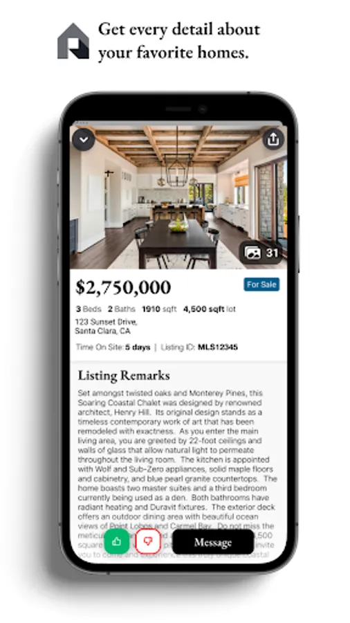 Find the perfect home with a variety of search filters or custom-drawn search area. Save your search and stay up-to-date with new listings and price change notifications. Collaborate with your agent - share listings, likes and dislikes with one-click feedback. Receive the latest, most accurate listing data powered by your agent’s MLS.