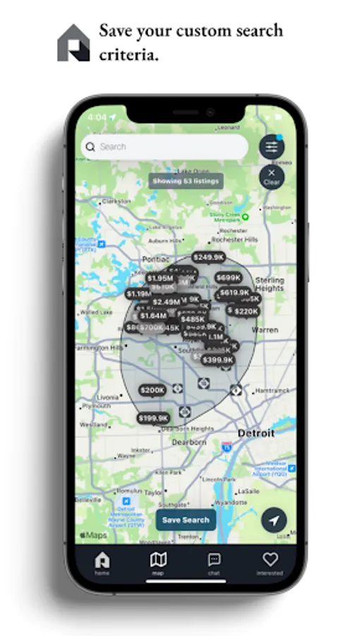 -Save a search based on your filters, search area or custom-drawn boundary.
