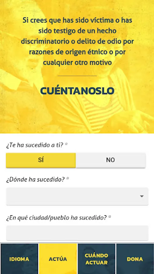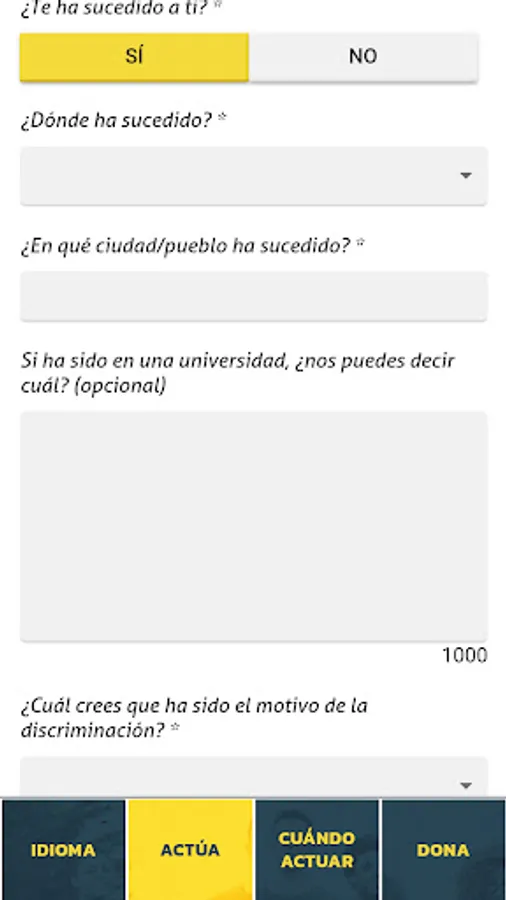 Through this app created by RED ACOGE, you can explain what happened and the context, anonymously or providing us with your data if you want. As long as you request it, we have a legal team that can help you file a complaint or advise you on your case.