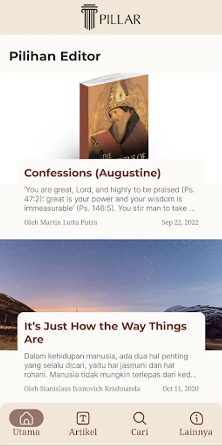 Get the latest edition of each month directly to your phone and you can enjoy anytime, anywhere. In each monthly edition contained a summary of the sermon Pastor. Stephen Tong, book reviews, Let's Take Time to Ponder, and various other articles. You can also read the bulletin Pillar editions ago. In addition there is a spiritual reflections published on a weekly basis.