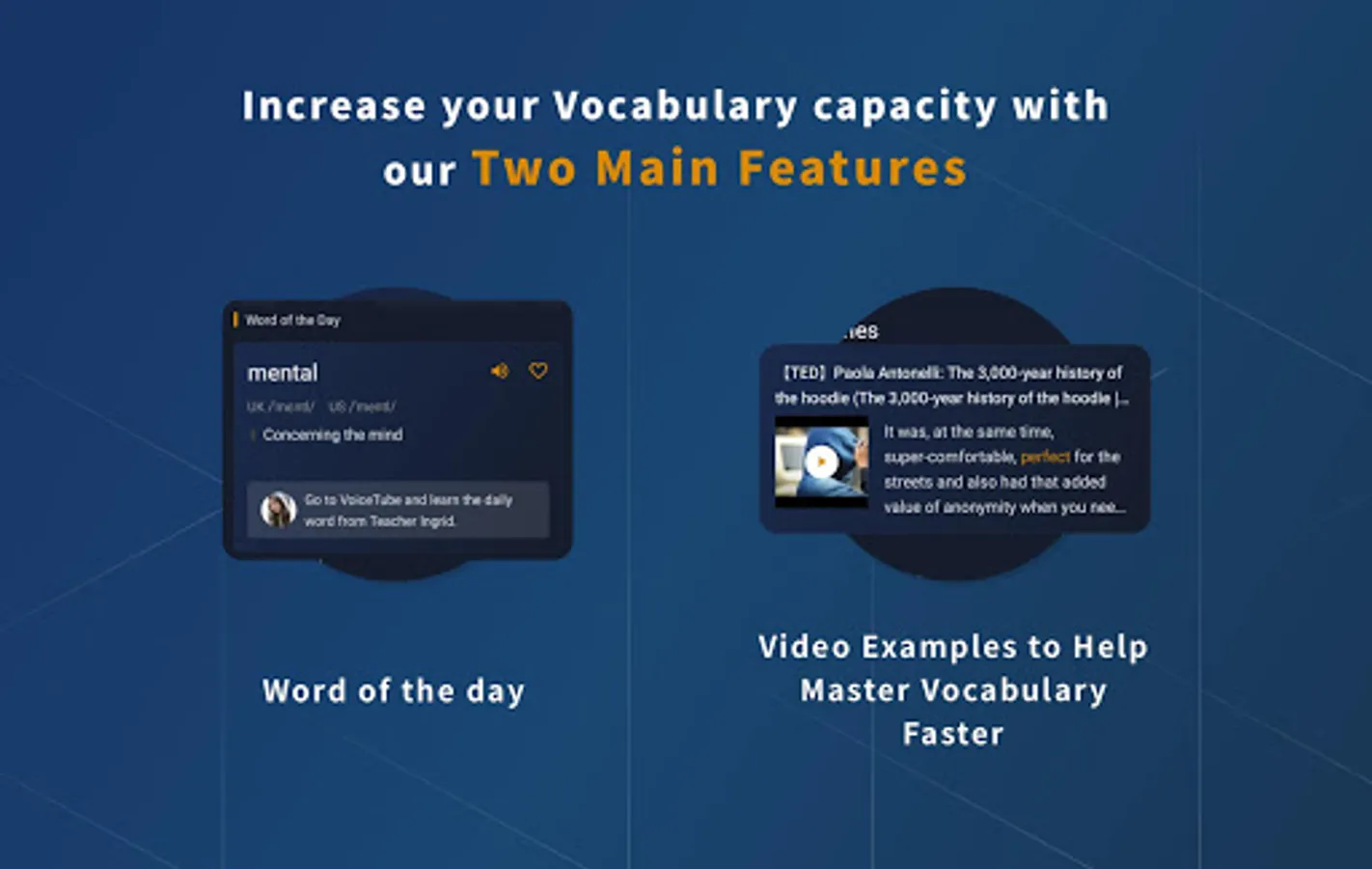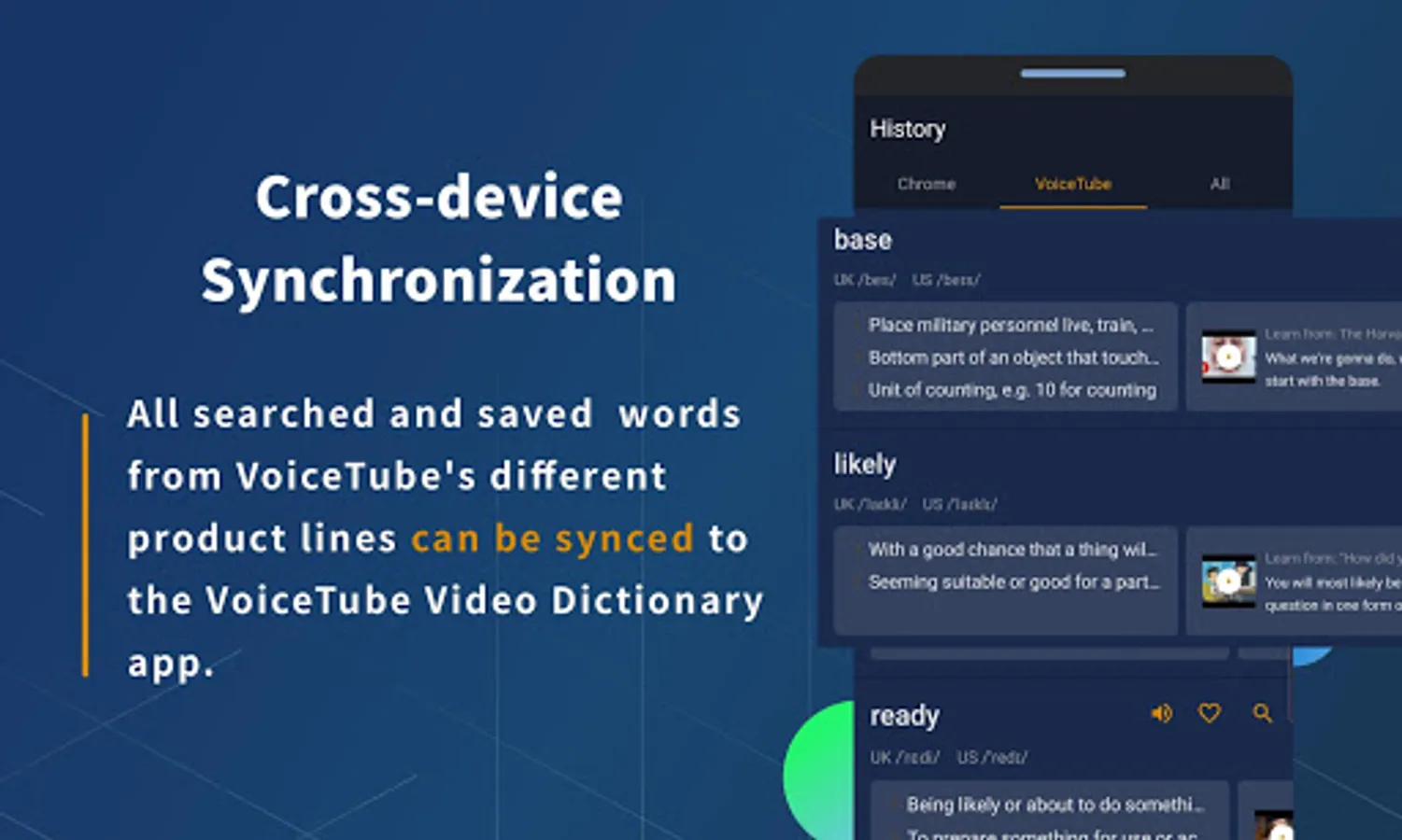 - All searched words from VoiceTube's different product lines can be synced to the VoiceTube Video Dictionary app.