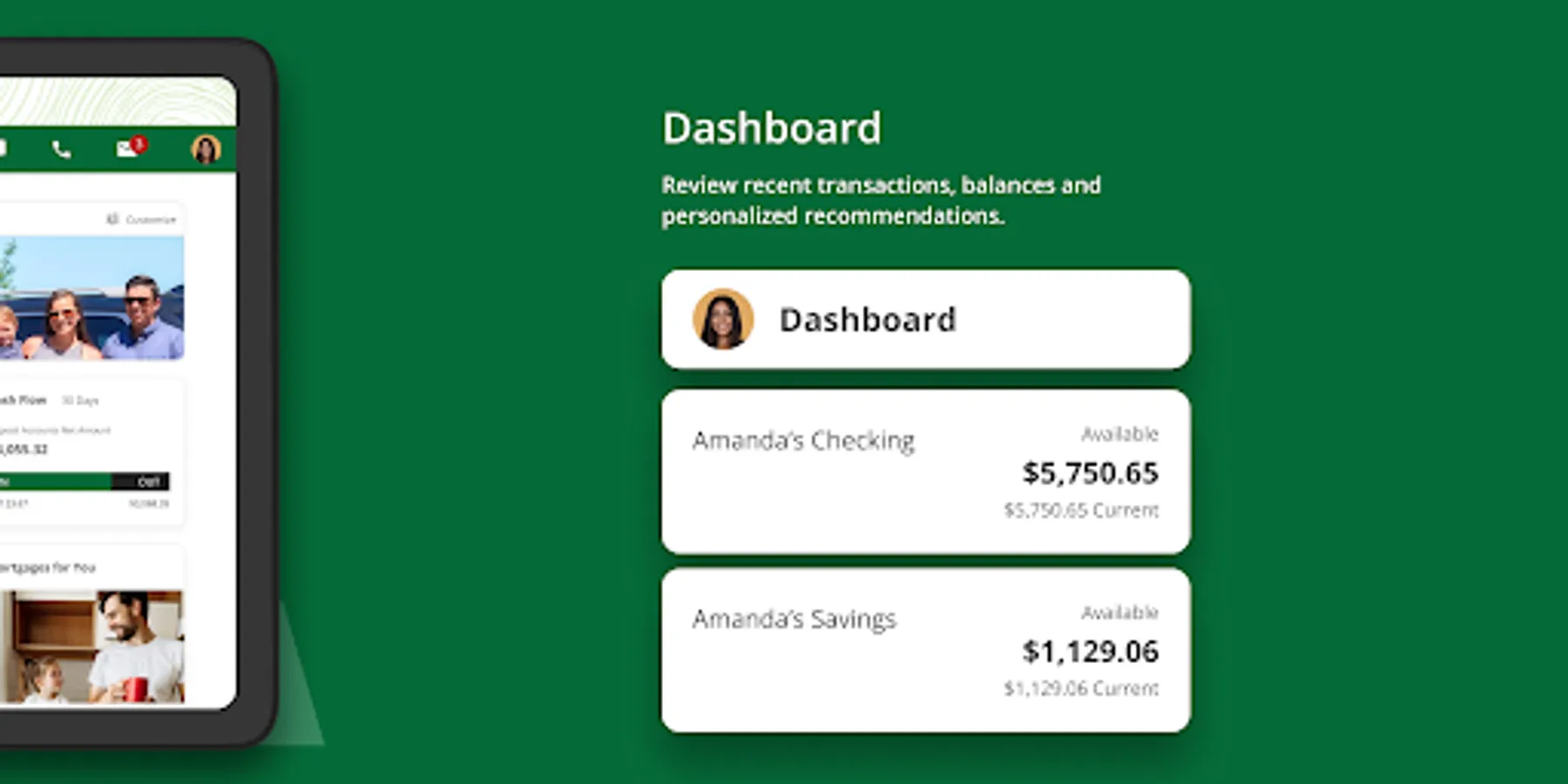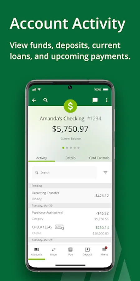• View an overview of accounts, loans, credit cards, and investments in Account Summary. Select an account to view transaction history.