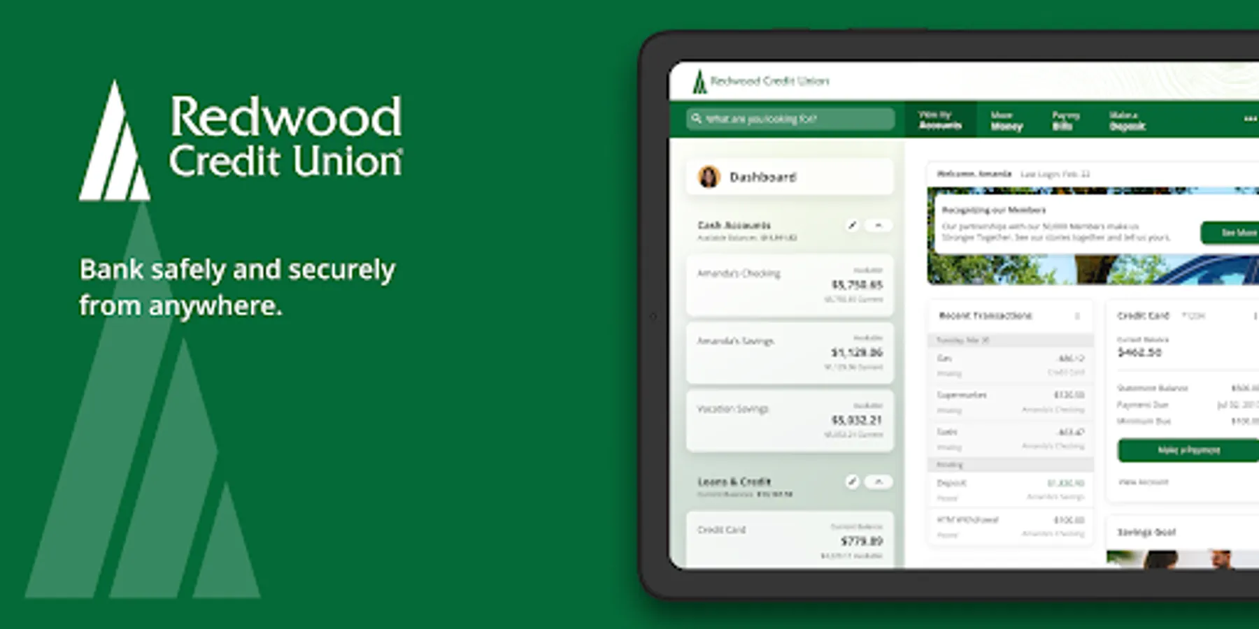 Redwood Credit Union’s digital banking app for Android devices is free and secure for RCU Members.