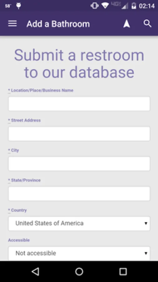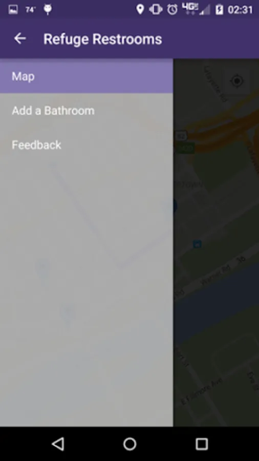 - Don't see a location in your area? Tap the drawer button in the top left and select "add bathroom" to add a new listing to refugerestrooms.org.