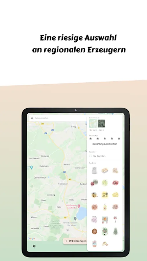 You can find and offer regionally produced goods from the areas of food, non-food, catering as well as goods and services from charitable institutions.