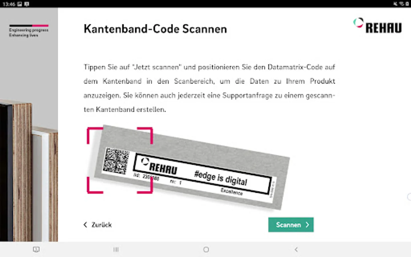 - Receive all the relevant information about the edge with a simple scan of the data matrix code on your edgeband