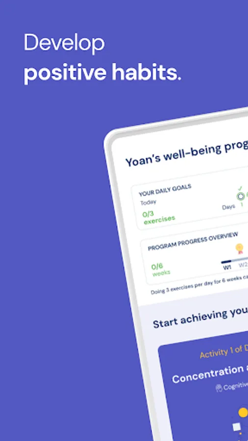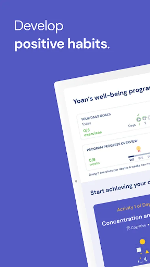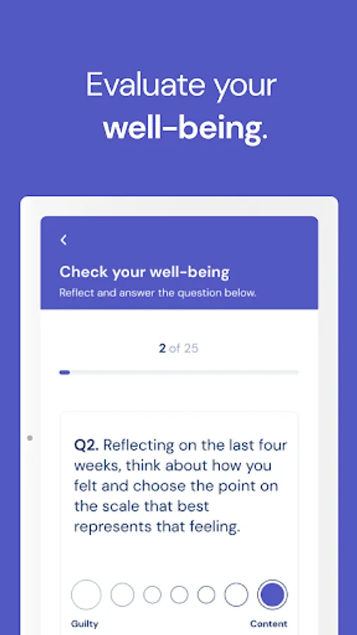 - Well-being tracker with rewards and badges to show off your progress toward feeling better