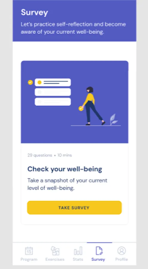 - Well-being tracker with rewards and badges to show off your progress toward feeling better