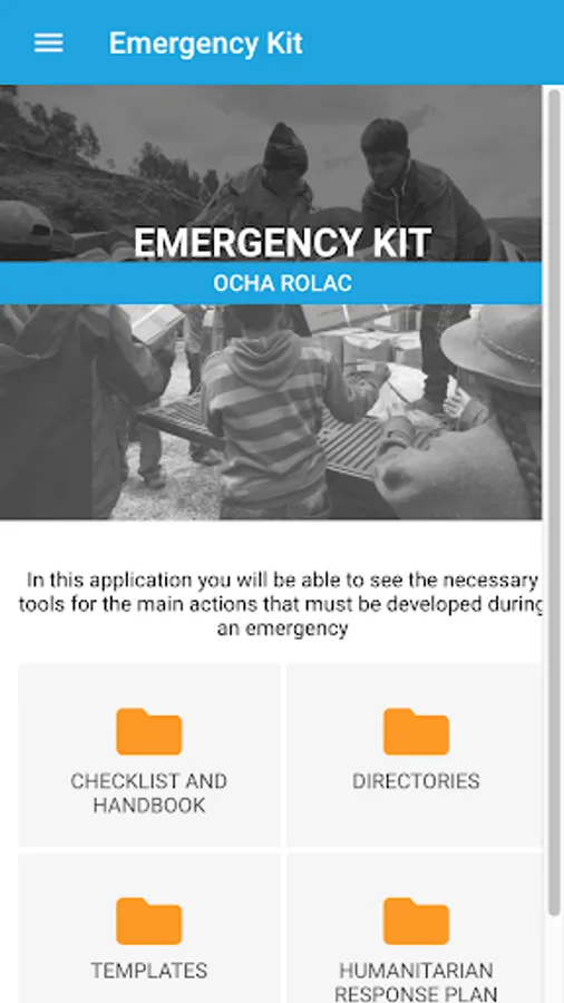 In this application you will be able to see the necessary tools for the main actions that must be developed during an emergency