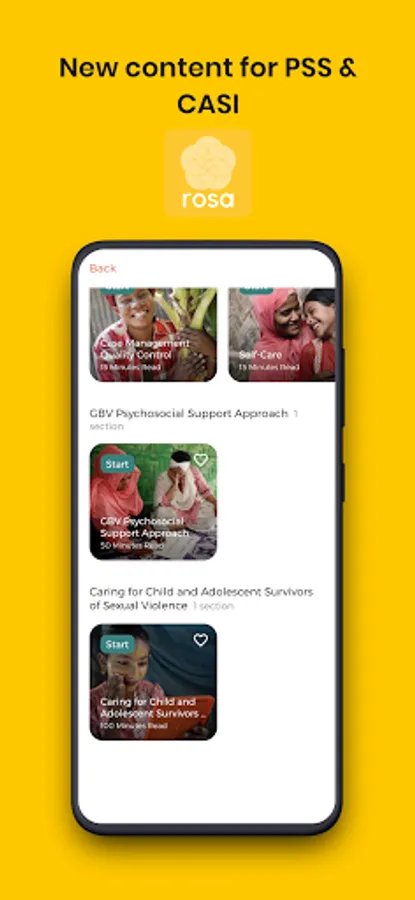 Rosa provides key content on gender-based violence knowledge, case management, communication and attitude skills; offers self or supervisor-administered skills assessments; and a community space for users to expand their learning through facilitated remote discussions and distance supervision.