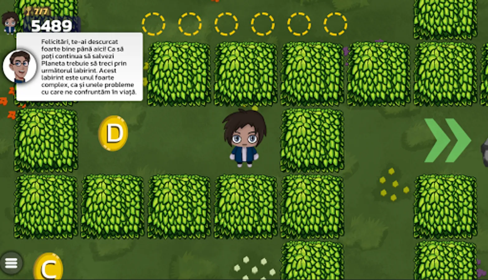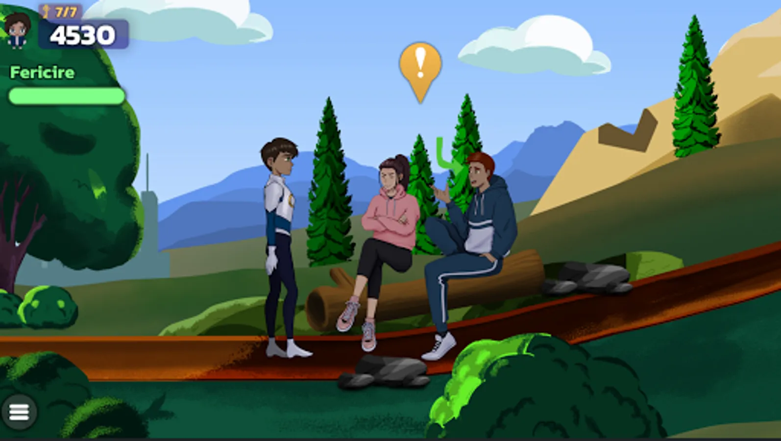 The game is based on the Retman character, which is belonging to tested packages of cognitive-behavioral therapy for promoting child and adolescent mental health (i.e., Rational Emotive Behavioral Education, REBT, Ellis, 1956; rational stories and therapeutic cartoons). The game has seven levels that take place in different territories on Earth, that are under the power of Irrationalizer and need to be conquered back from the bad mind, and at the end of each level, the player has to win the key to go into the next area. Each level has a trial part at the beginning, in which Retman is explaining player’s mission, and has various degrees of complexity, which increase as the player progresses. The scenario of the game and the seven levels structure focuses on seven objectives: Level 1: identifying the emotional reactions, and differentiating between basic emotions, complex emotions, and functional and dysfunctional emotions; Level 2: building relaxation and mindfulness skills; Level 3: identifying the relation between cognitive processes, emotions, and behavioral reactions; Level 4: changing irrational cognitions into rational cognitions; Level 5: building problem-solving skills; Level 6: building happiness and control attention skills; Level 7: consolidation of the previous skills and building happiness skills.