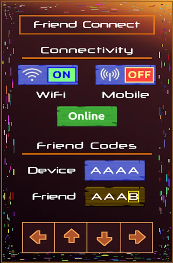 Two player mode is provided by Retro Joyco's multi-player Friend Connect add-on (included with purchase). Take your app online. Request a device code when you're ready for two player fun. Input your friend's code and pow ... you connect! Begin playing immediately.